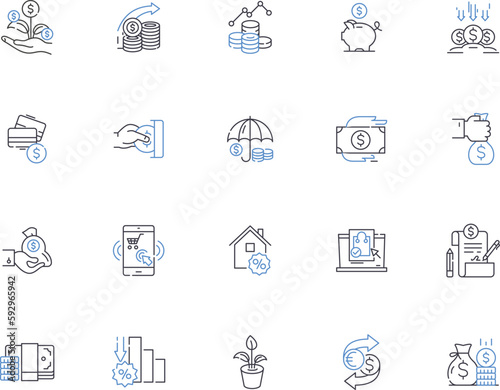 Sales outline icons collection. Sell, Purchases, Revenue, Deals, Trade, Profit, Promoting vector and illustration concept set. Negotiate, Market, Exchange linear signs