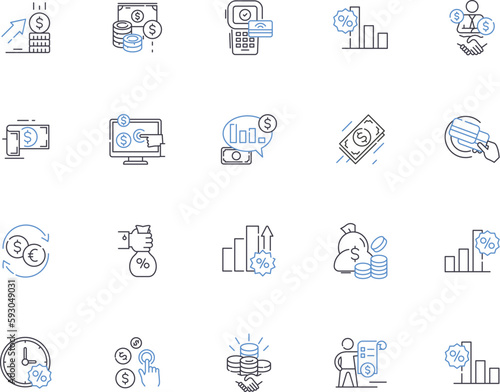 Sales outline icons collection. Sell, Purchases, Revenue, Deals, Trade, Profit, Promoting vector and illustration concept set. Negotiate, Market, Exchange linear signs