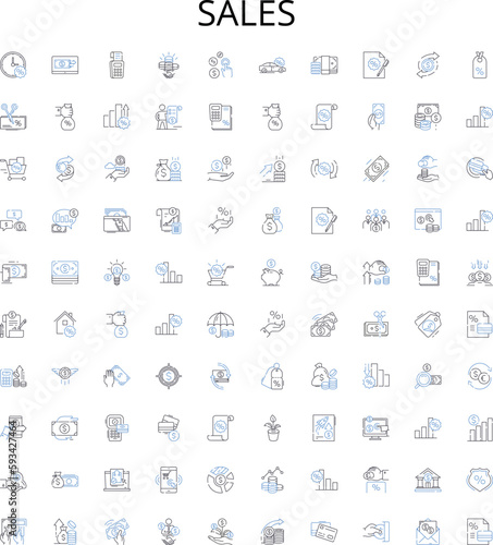 Sales outline icons collection. Sell, Purchases, Revenue, Deals, Trade, Profit, Promoting vector illustration set. Negotiate, Market, Exchange linear signs