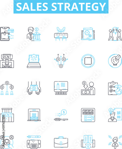 Sales strategy vector line icons set. Marketing, Retention, Customer, Acquisition, Lead, Product, Conversion illustration outline concept symbols and signs