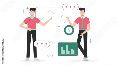 Sales team reviewing monthly performance leaderboard flat vector illustration