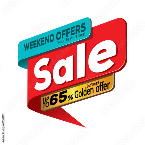 Sale,weekend offer banner, up to 65%. Vector illustration.