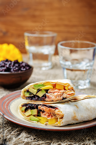 Salmon avocado mango black rice burritos