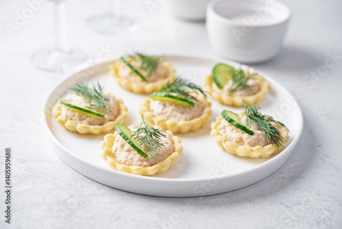 Salmon mousse tartlets in a plate