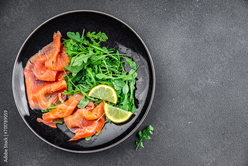 salmon salad seafood eating cooking appetizer meal food snack on the table copy space food background rustic top view