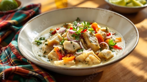 Salt Mackerel Run Down (Jamaican Coconut Fish Stew) with herbs and spices (Jamaican Cuisine)