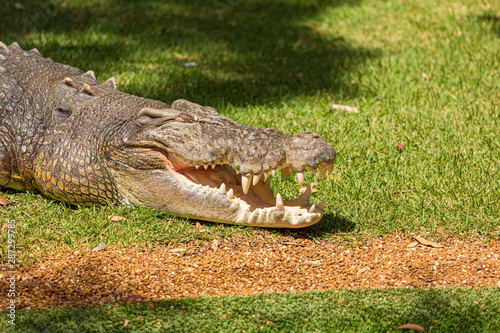 saltwater crocodile (Crocodylus porosus) a crocodilian basking in the sun