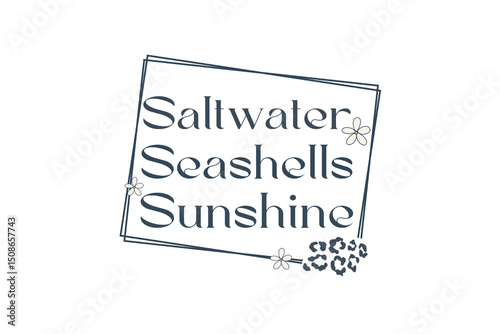 Saltwater seashells sunshine text design with flowers and leopard print Summer Word Art Design