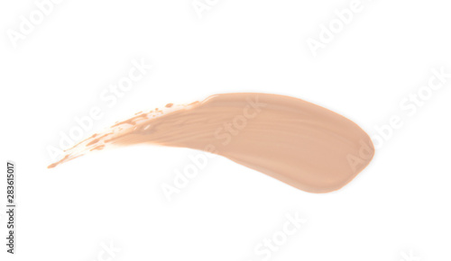 Sample of liquid foundation foundation on white background, top view