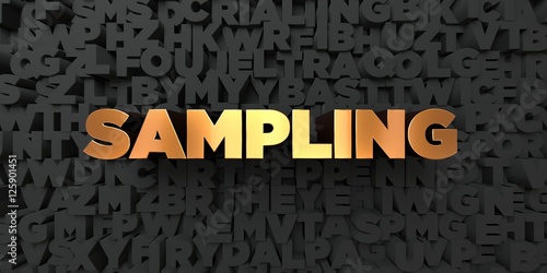 Sampling - Gold text on black background - 3D rendered royalty free stock picture. This image can be used for an online website banner ad or a print postcard.