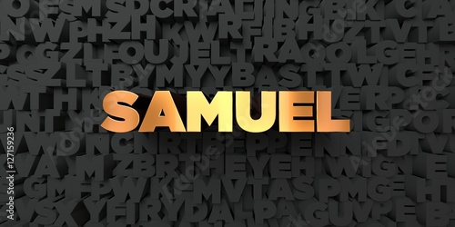 Samuel - Gold text on black background - 3D rendered royalty free stock picture. This image can be used for an online website banner ad or a print postcard.