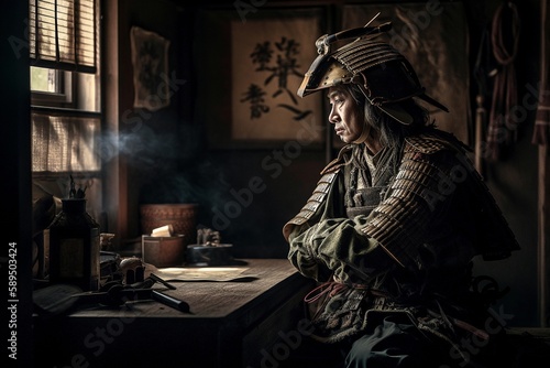 Samurai Warrior in Traditional Garb, 1600s Japan, Ai Genrative