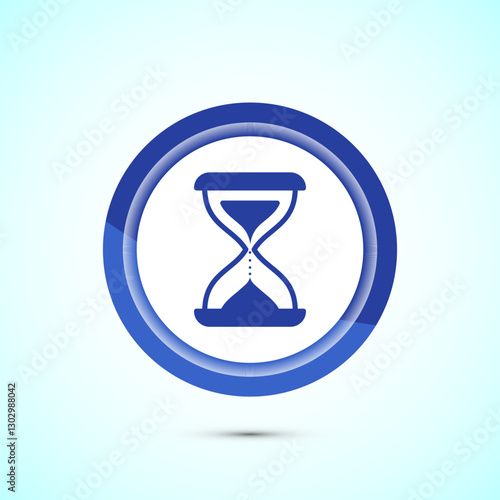 Sand clock icon design illustration. Hourglass symbol, Time measuring sign, Blue color button design