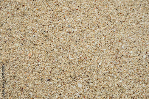 Sand texture background, Small shells Broken coral , natural sand at the beach close up.