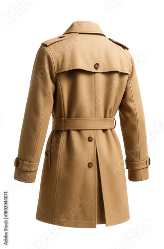 Sand-colored trench with epaulettes and a back vent for enhanced mobility.