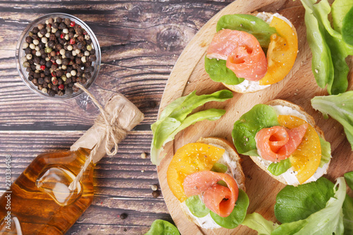 Sandwiches with salmon and cheese