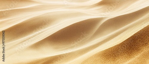 Sandy beige desert texture with wind-swept dunes and fine grains illuminated by a soft golden light creating a tranquil mood