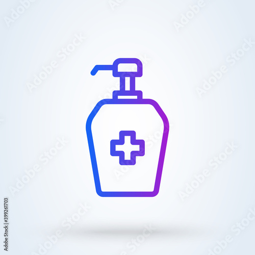 sanitizer liquid soap sign line icon or logo. Virus protection concept. antibacterial soap linear illustration.