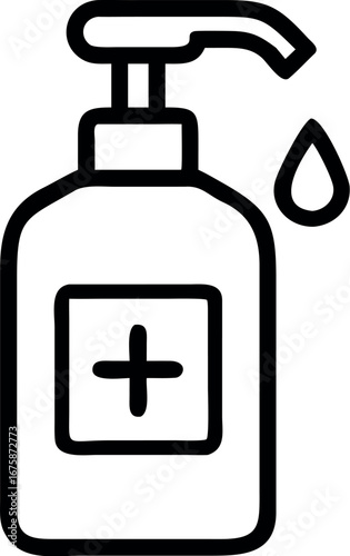 Sanitize/sanitizer bottle with disinfectant soap line art vector