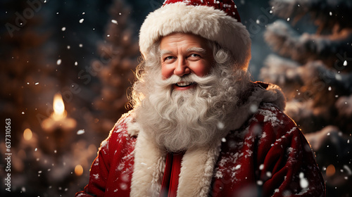 Santa Claus bokeh dark background with snow