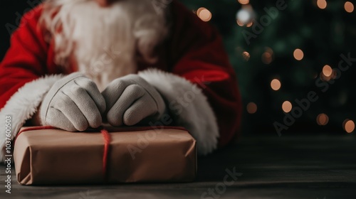 Santa claus delivering gifts under christmas tree - festive holiday scene for greeting cards and posters