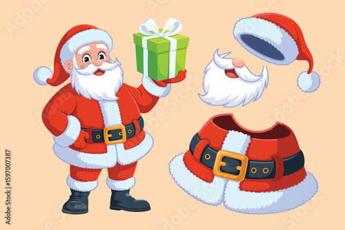 Santa Claus Flat Cartoon Set with Holiday Elements