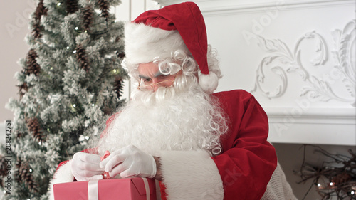 Santa Claus preparing presents for children