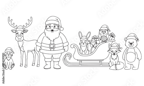 Santa Claus reindeer owl fox rabbit bear sleigh gifts vector