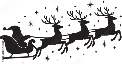 Santa Claus Sleigh Silhouette with Reindeer under Starry Sky – Christmas Vector Illustration