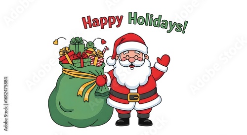 Santa Claus wishes Happy Holidays with a sack of gifts
