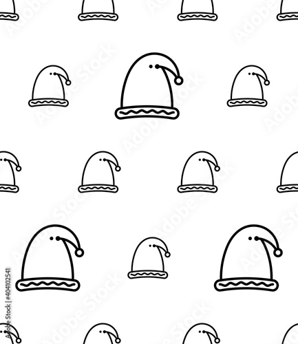 Santa Hat Icon Seamless Pattern, Santa Claus Suit Hat, Fur Head Wear