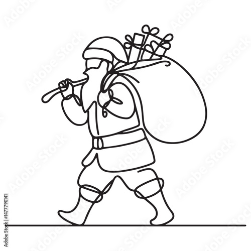 Santa with Sack Silhouette Walking A Christmas Holiday Illustration