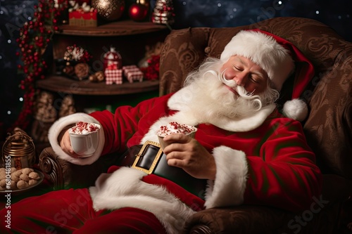 Santa's Well-Earned Rest: A Cozy Nap by the Fireplace, generative AI