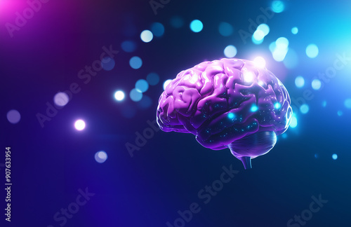 Santé Mentale : Cerveau Lumineux sur Fond Abstrait