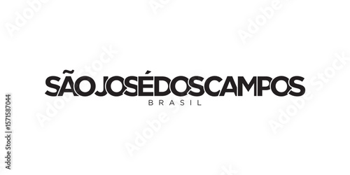 Sao Jose dos Campos in the Brasil emblem. The design features a geometric style, vector illustration with bold typography in a modern font. The graphic slogan lettering.
