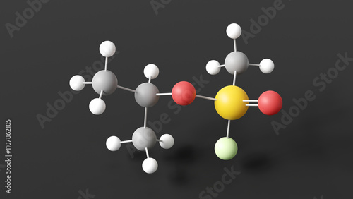 sarin molecule 3d, molecular structure, ball and stick model, structural chemical formula nerve agent