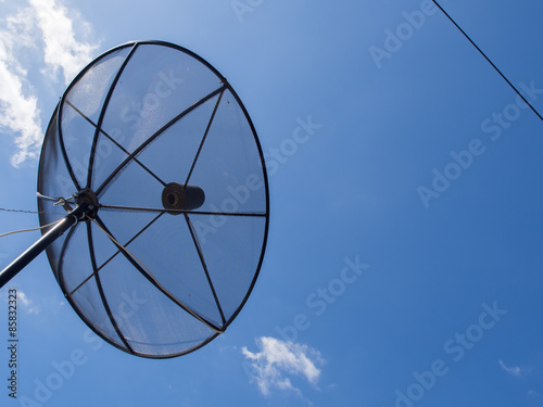 Satellite dish transmission data on blue sky background.Satellite dish communication technology network.