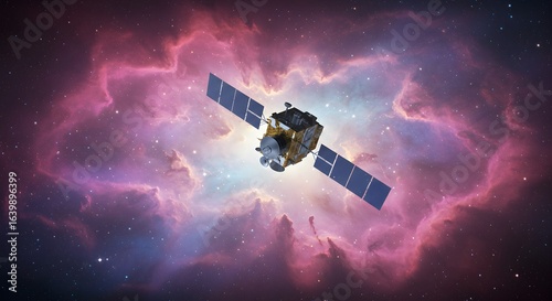 Satellite in Space Against Nebula Background