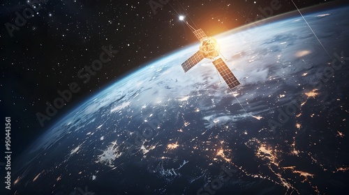 Satellite Orbiting Earth: A satellite orbiting Earth, with the planet and stars in the background.
