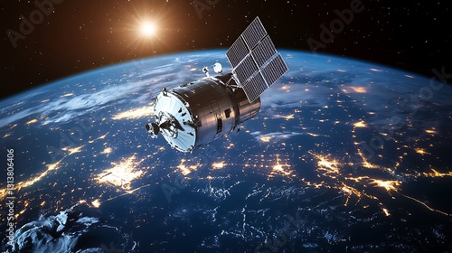 Satellite Orbiting Earth Sunrise Space Technology Global Connectivity