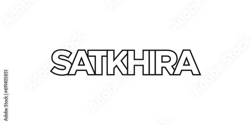 Satkhira in the Bangladesh emblem. The design features a geometric style, vector illustration with bold typography in a modern font. The graphic slogan lettering.