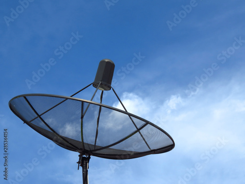Sattlelite technology connect people from around the world. Sattlelite dish with blue sky background.