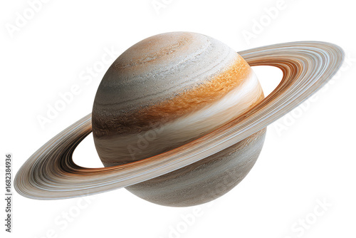 Saturn, a ringed planet, in space. Detailed, textured image, showing the planet's rings and surface features