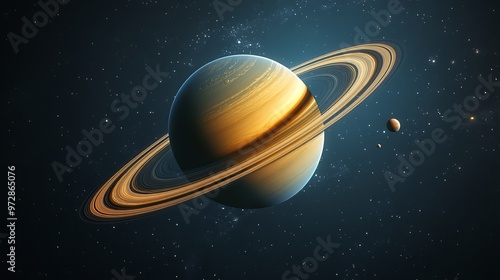 saturn planets in deep space with rings and moons surrounded. isolated on black background