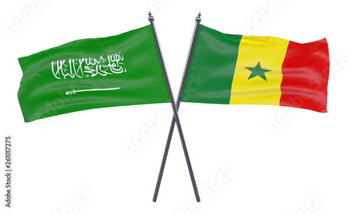 Saudi Arabia and Senegal, two crossed flags isolated on white background. 3d image