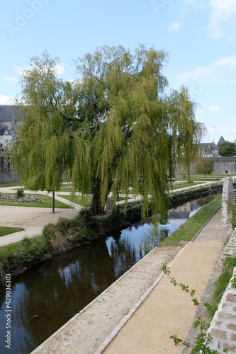 Saule pleureur dans les jardins des remparts à Vannes en Bretagne