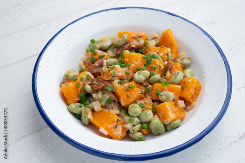 Sautéed pumpkin with broad beans. Spanish traditional tapas.