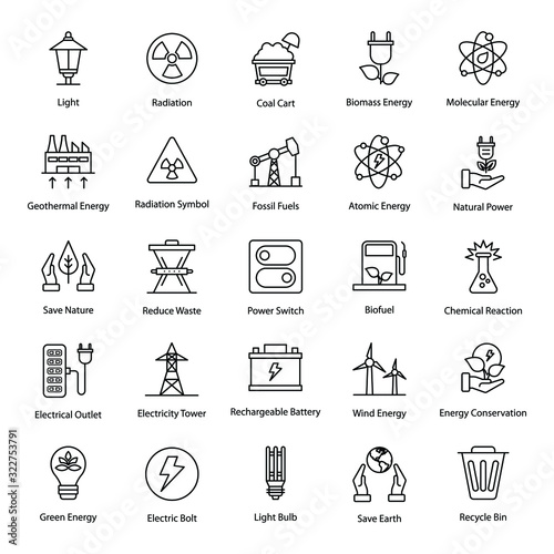 Save Energy Line Icons Pack
