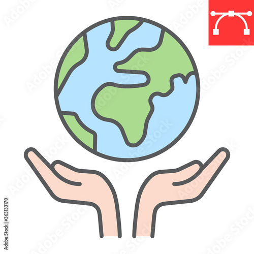 Save the planet color line icon, earth and ecology, earth in hands sign vector graphics, editable stroke colorful linear icon, eps 10.