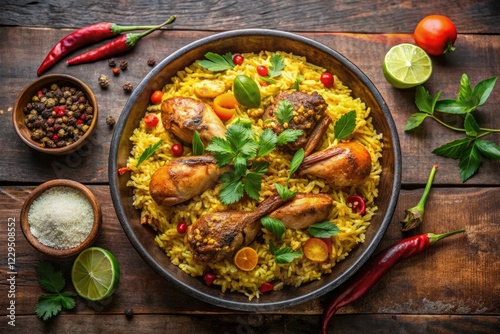Savor authentic Bangladeshi chicken biryani: fragrant rice, tender chicken, vibrant vegetables.